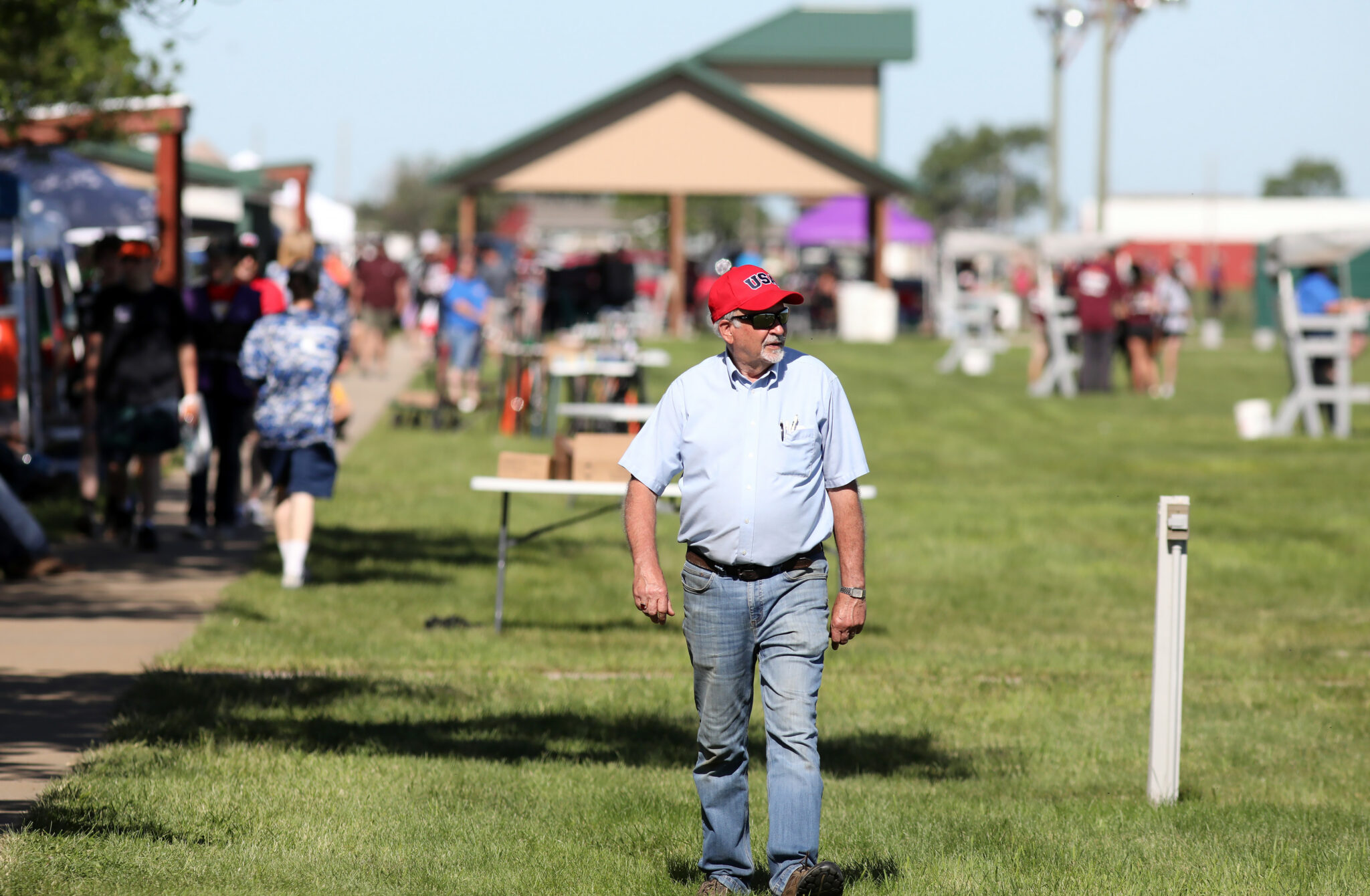 Jerry Brick, president of the Aberdeen Gun Club, walks about the grounds during Sunday’s session of the South Dakota State High School Clay Target League State Tournament. Photo by John Davis.