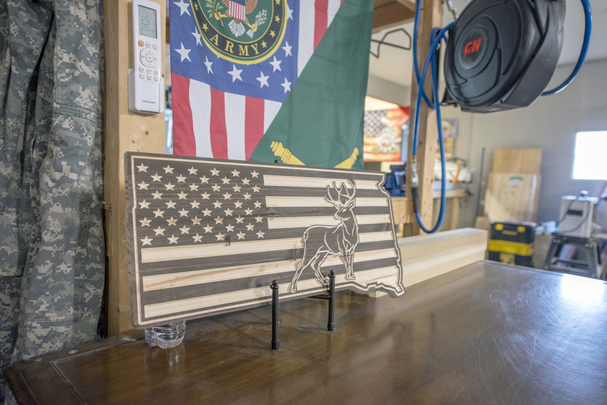 In Nick’s retirement, he utilizes a portion of the garage as a woodshop and creates commemorative plaques for fellow service-people. Substantial rewiring had to be updated to use his modern-day power tools. The garage not only accommodates three vehicles but lots of storage as well and is climate controlled for all seasons.