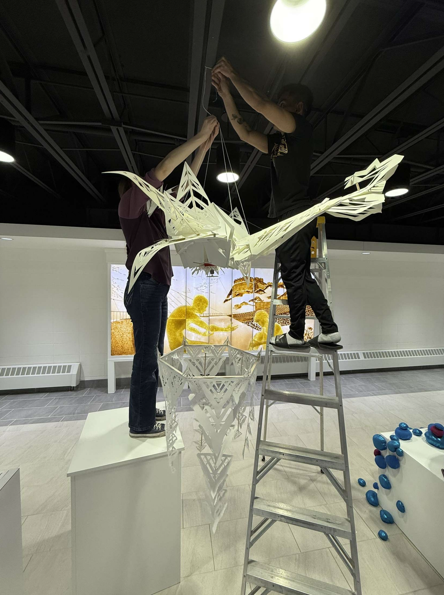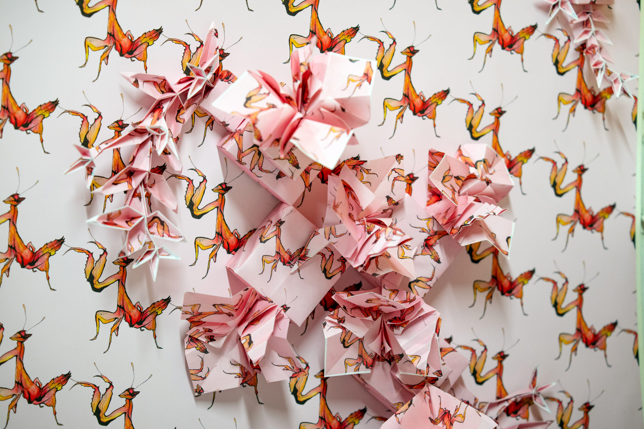 At first, his major was Art Education. Since his interests were directed more towards college education, he decided to fully focus on the base studio art with an emphasis in 2D studio. During his first years of college, he kept his interest in portraits, but also discovered a passion for new mediums like the Chinese and Japanese art of origami and its representation of emotions and abstract concepts. Imus has been working with it since then, creating some large-scale works of mini versions of origami. He shared that making these large-scale works was not easy due to the thickness of the paper and its stiffness when it’s folded. So, he had to use other methods, studying the way paper folds in a normal-sized origami piece before replicating it by cutting and pasting larger pieces of paper to replicate the folds of the paper.
